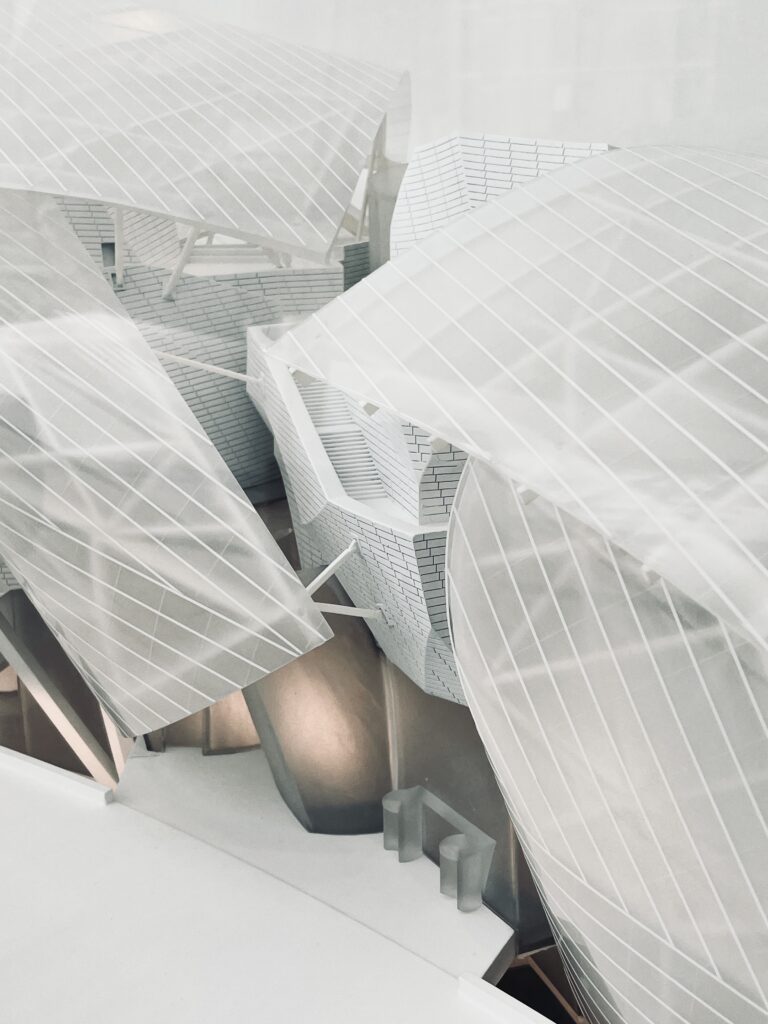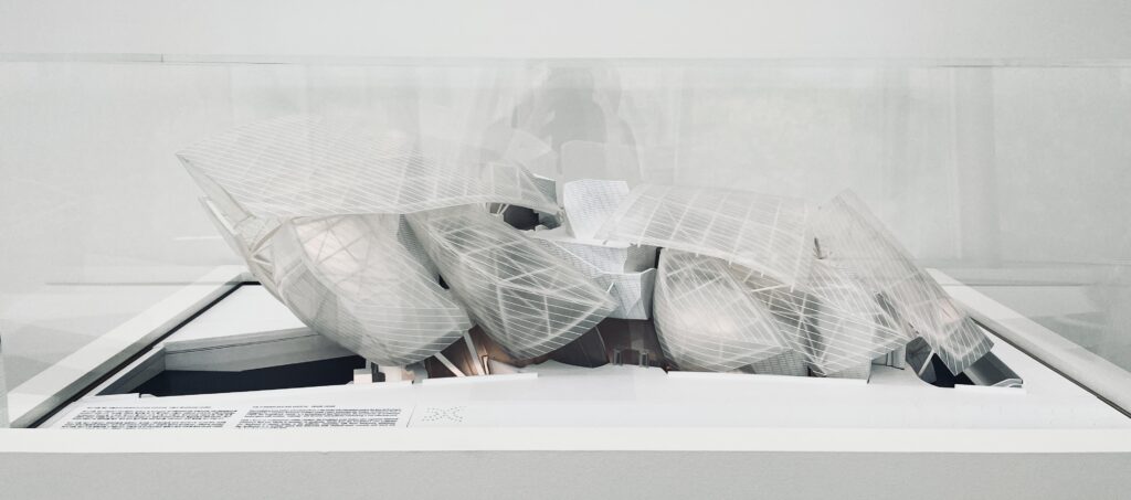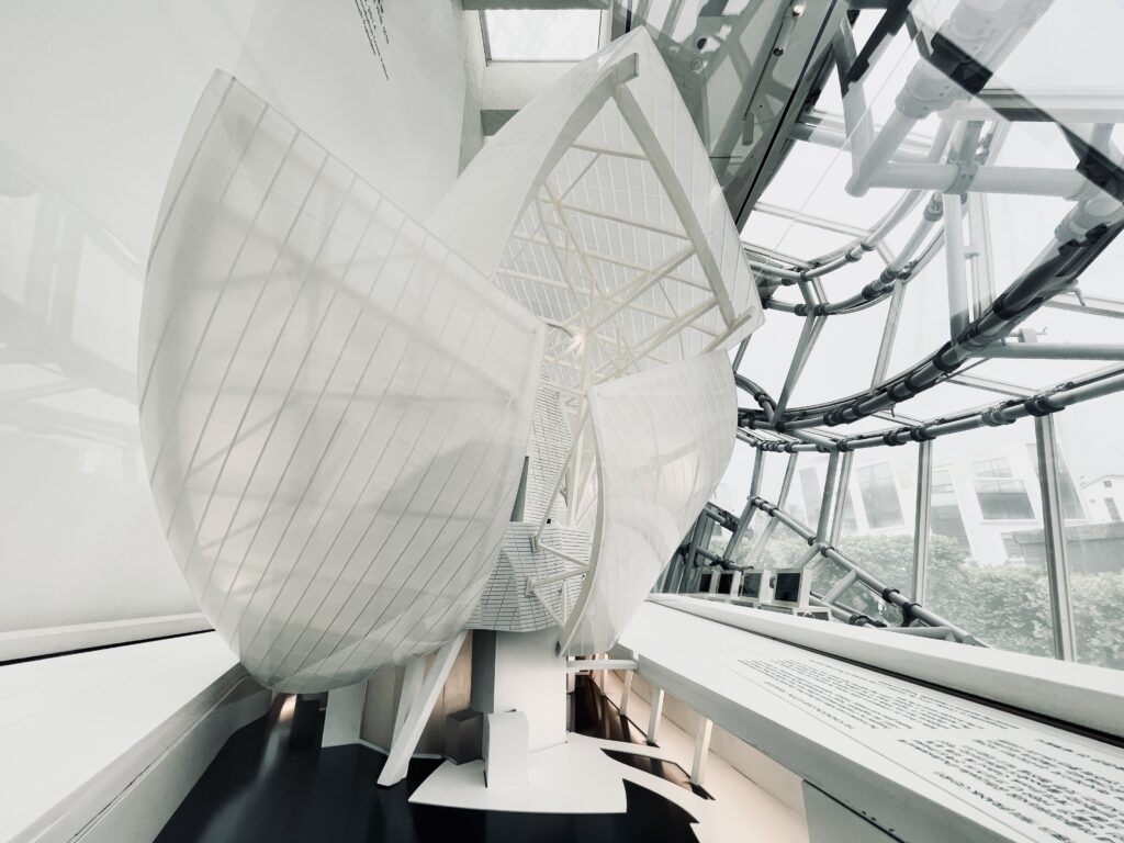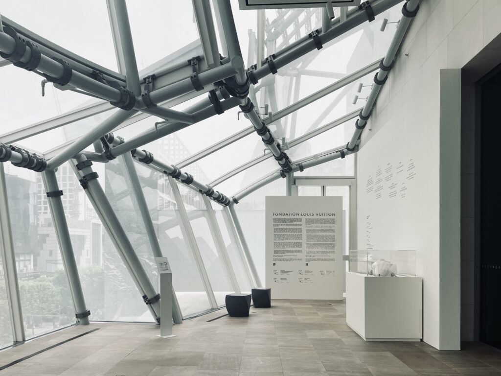 四樓除了展覽空間之外、還有一個專門向大眾介紹路易威登基金會的地方。走進這個由不規則玻璃屋頂包圍的空間,就像是身處於一個正翩翩起舞的舞者舞裙之內,感覺相當奇妙。左側備有座位區,可讓人們戴起耳機觀看基金會準備好的影片們,右側則是簡單介紹基金會成立、包括總部落成的歷史;牆上有說明文字及大事年表,前方的玻璃櫃中則有一個精美的總部建築模型。